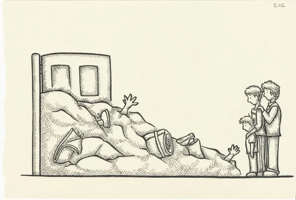It looked to be a quiet Saturday evening, like every other Saturday evening in the Pufferly household. Mr. Pufferly sat in his favorite armchair catching up on last week’s newspapers, and Mrs. Pufferly sat in her rocking chair knitting her ten-thousand-eight-hundred-and-eleventh scarf. She had never found the need to graduate on to more complicated articles of clothing because “the mindless construction of a thirty-foot scarf is therapeutic.” That’s what she would say whenever anyone asked her. “What? Am I trying to win a knitting prize?” she would add, if they kept pressing. All her patients at Hopensuch Hospital went home with a personalized fresh-off-the-knitting-needles neck wrapping.